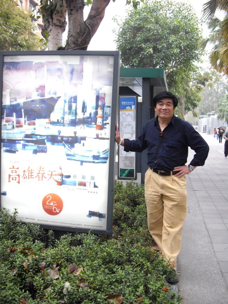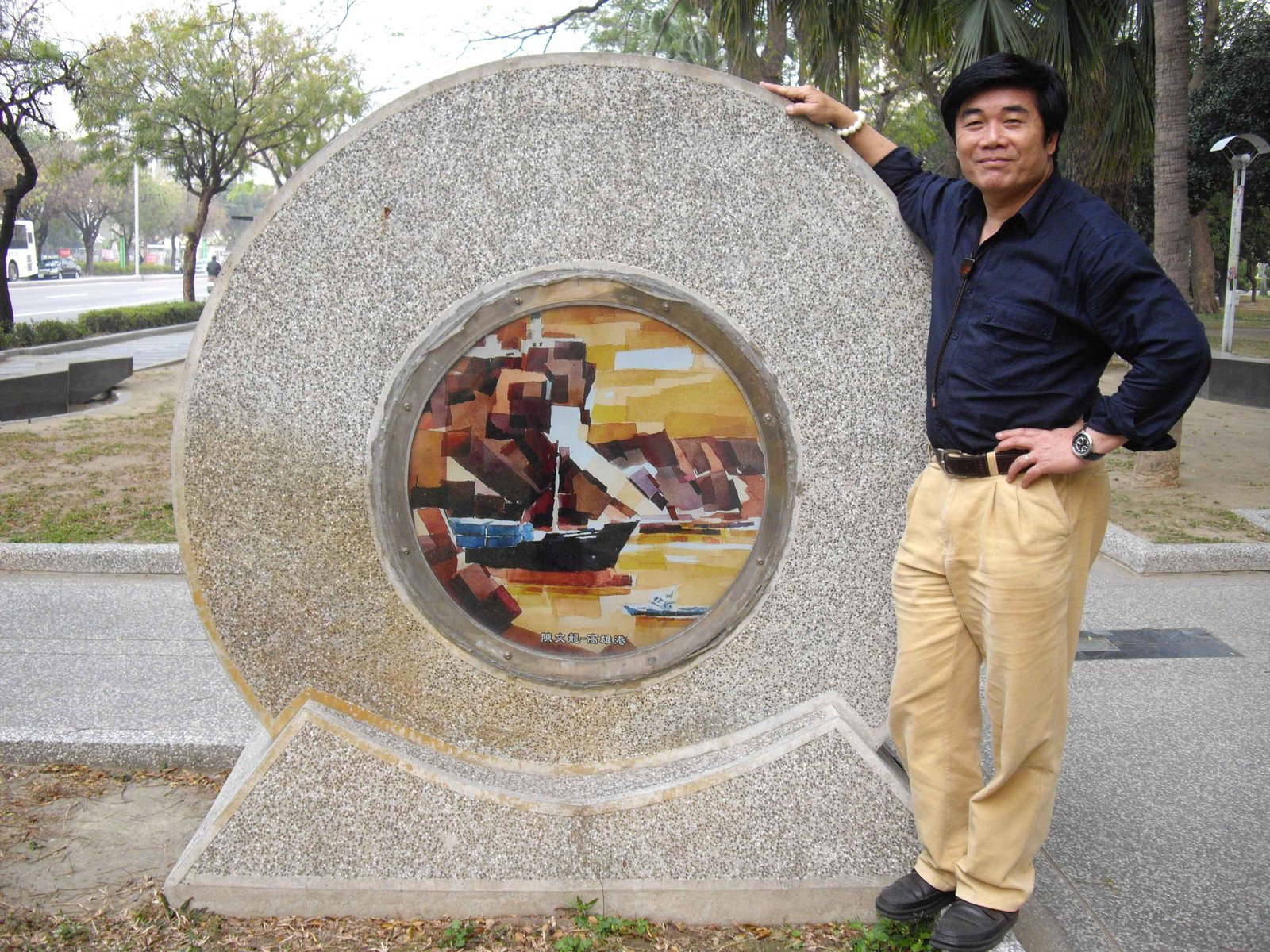 C007 陳文龍老師在文化中心前石鼓燈箱 2011.2.21