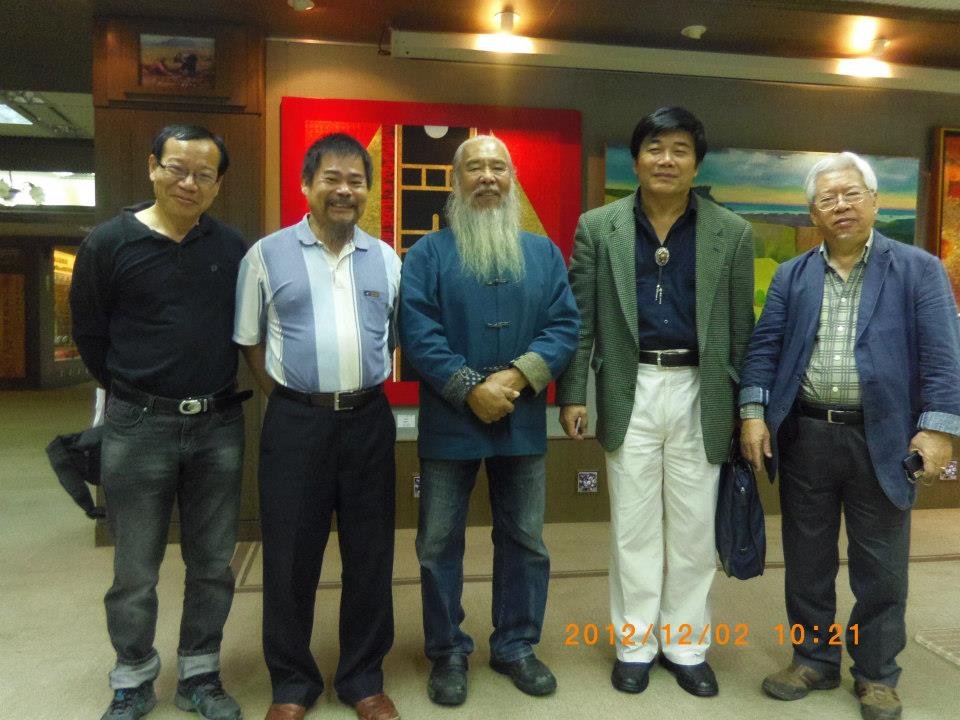 P003 陳文龍---2012今日畫展於台中港區藝術中心開幕後,與謝里法教授、會長簡錫圭、畫家鐘有輝合影