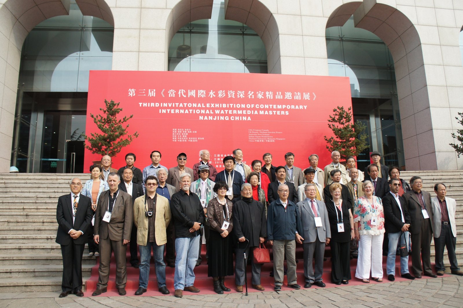 P008 陳文龍---2012第三屆當代國際水彩資深名家精品展各國畫家在南京市規劃建設展覽館前合影