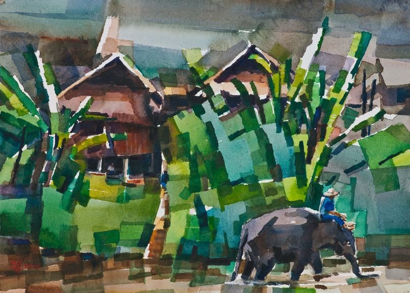 W002 陳文龍---泰北記遊 水彩 38x56cm 2010
