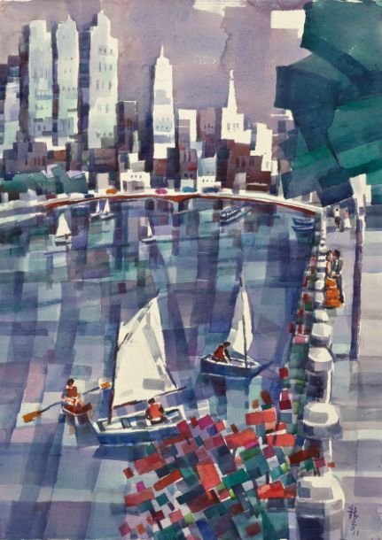 W013 陳文龍---高雄港之晨 75x105cm 2012