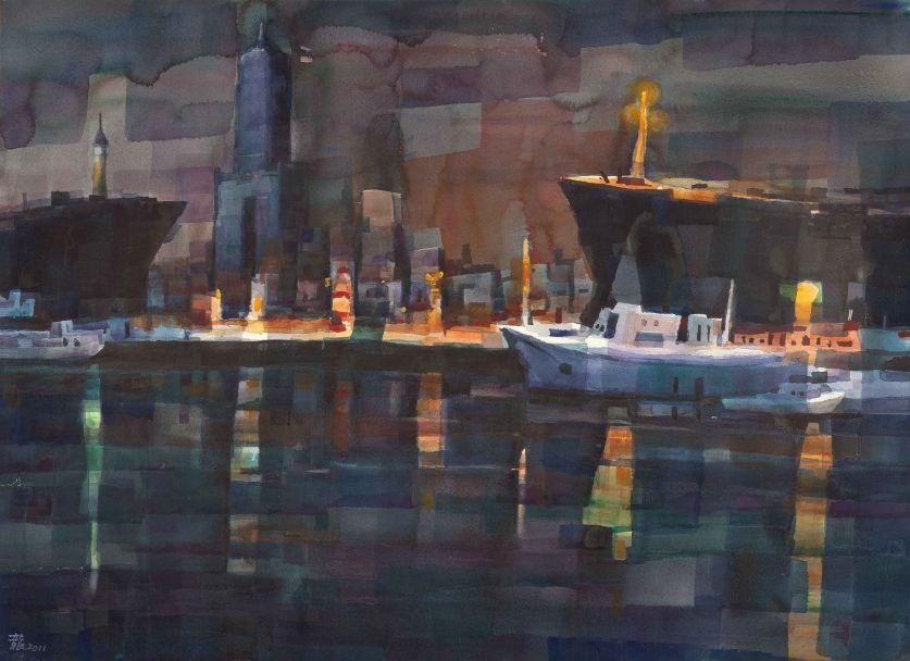 W012 陳文龍---高雄港之夜 77x107cm 2011